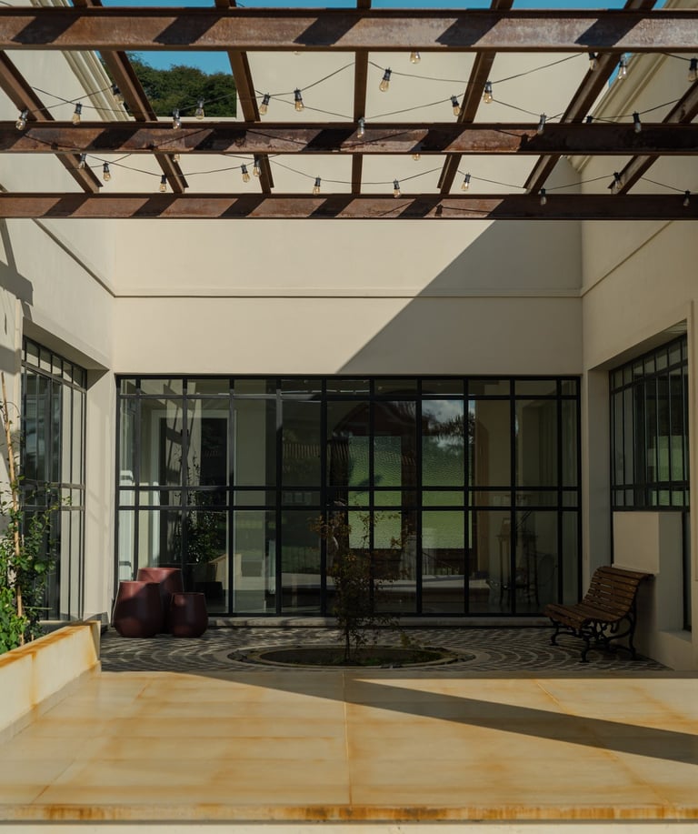 La casa fue pensada para parecer de siempre, aunque es completamente nueva. Rejas recuperadas, ladrillos a la vista, hierro oxidado, claraboyas y un gran patio vidriado la transforman en un espacio con carácter propio. Diseñada para habitar con comodidad, elegancia y una estética que emociona.