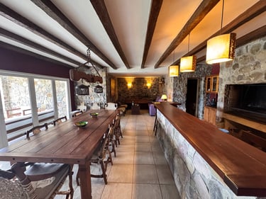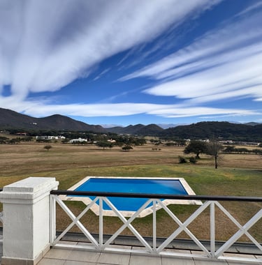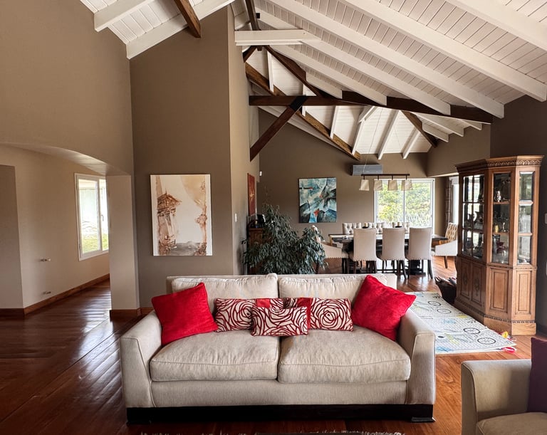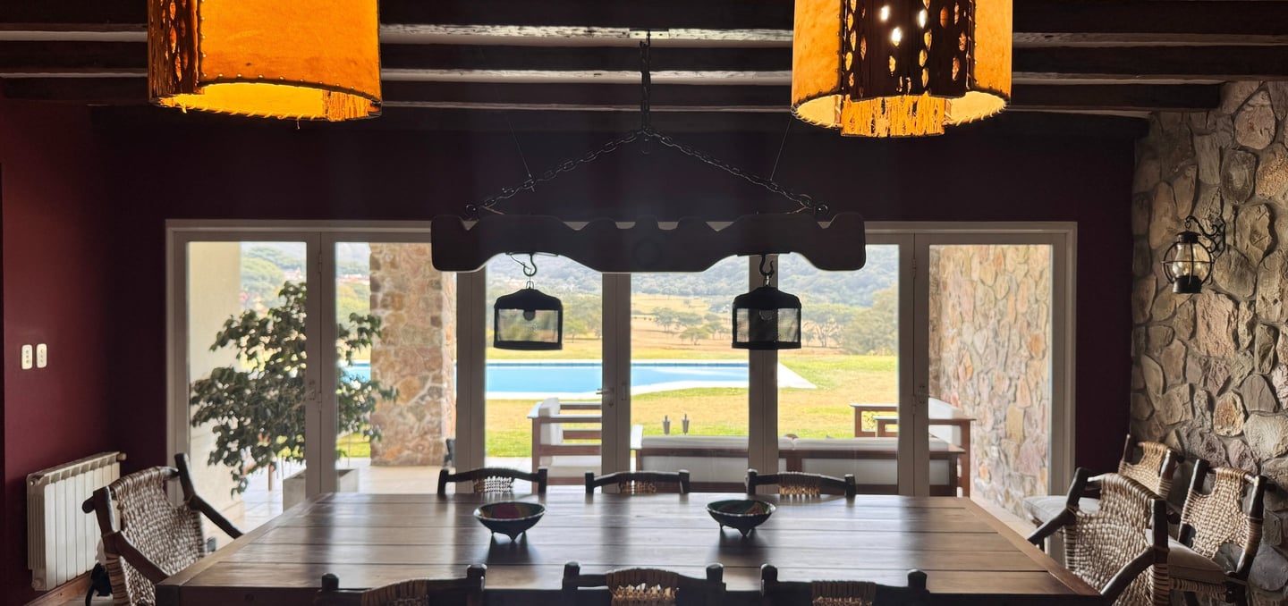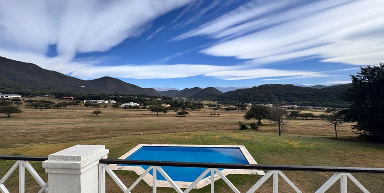La Casa se extiende en una sola planta, combinando nobleza constructiva y calidez en cada rincón. Su arquitectura de estilo clásico con techos de tejas francesa plana, pisos y techo en madera de lapacho, muros terminados en yeso alisado y piedra partida a mano, generando una identidad única. Cada espacio fue pensado para disfrutar en familia, con amplios ventanales (DVH) que abrazan la luz del oeste y abren paso a una vista inmensa: el campo de golf como escenario permanente. Desde el comedor hasta el último dormitorio, todo se orienta hacia ese verde sin interrupciones.